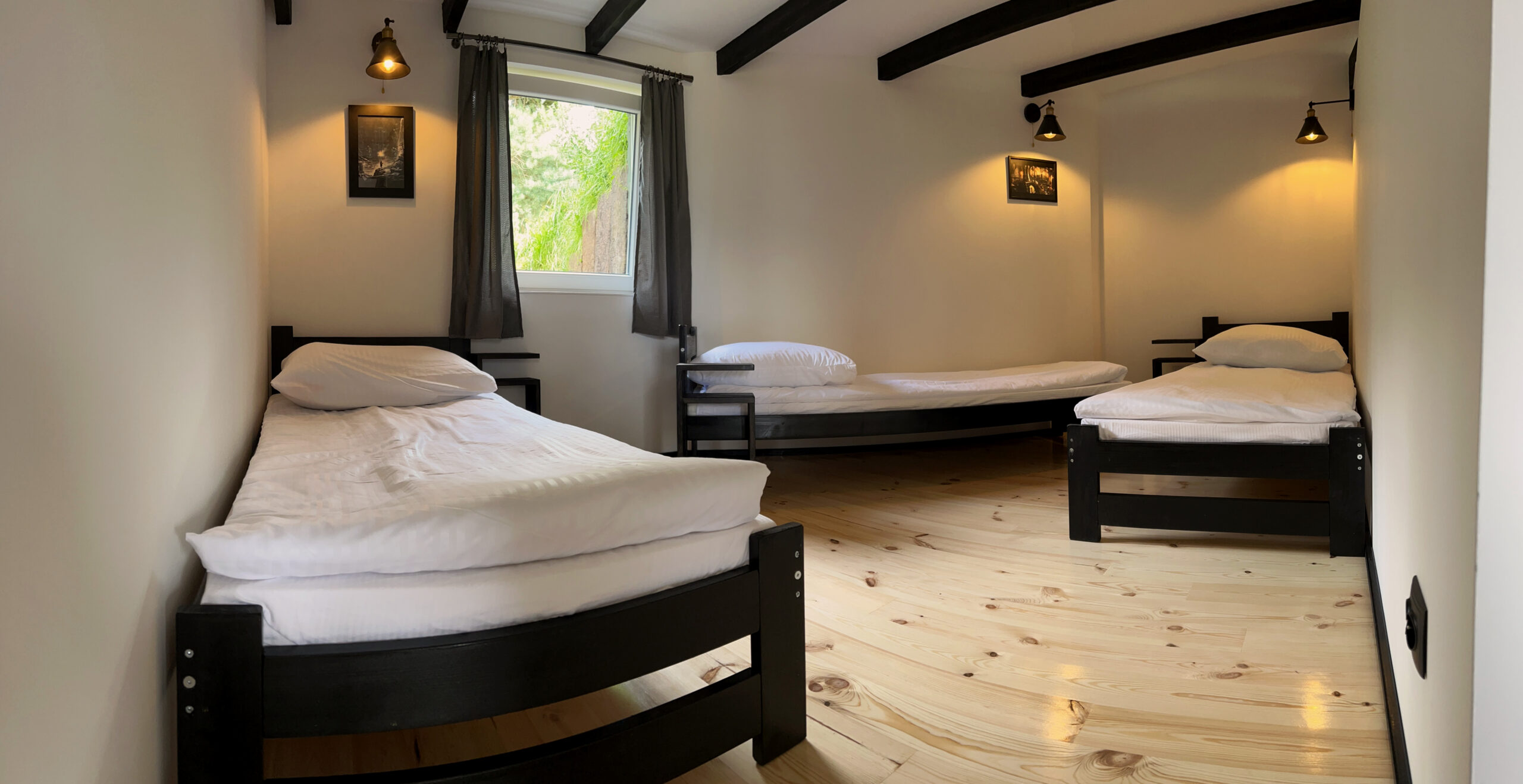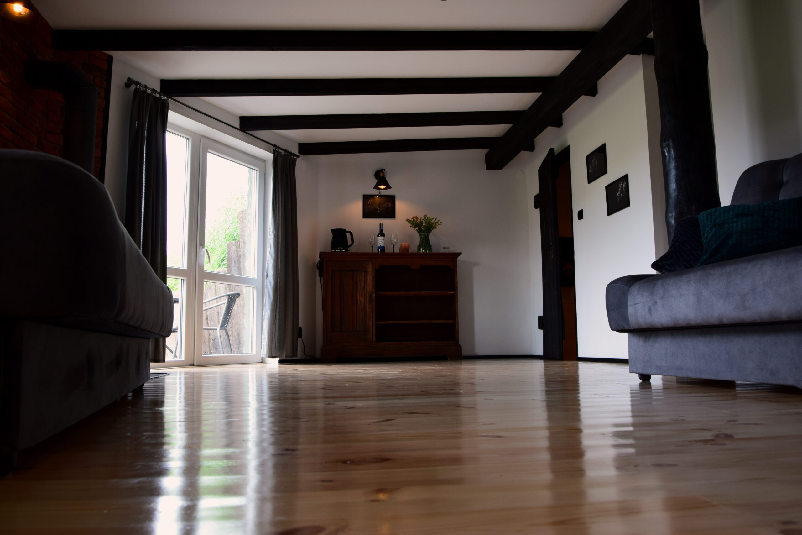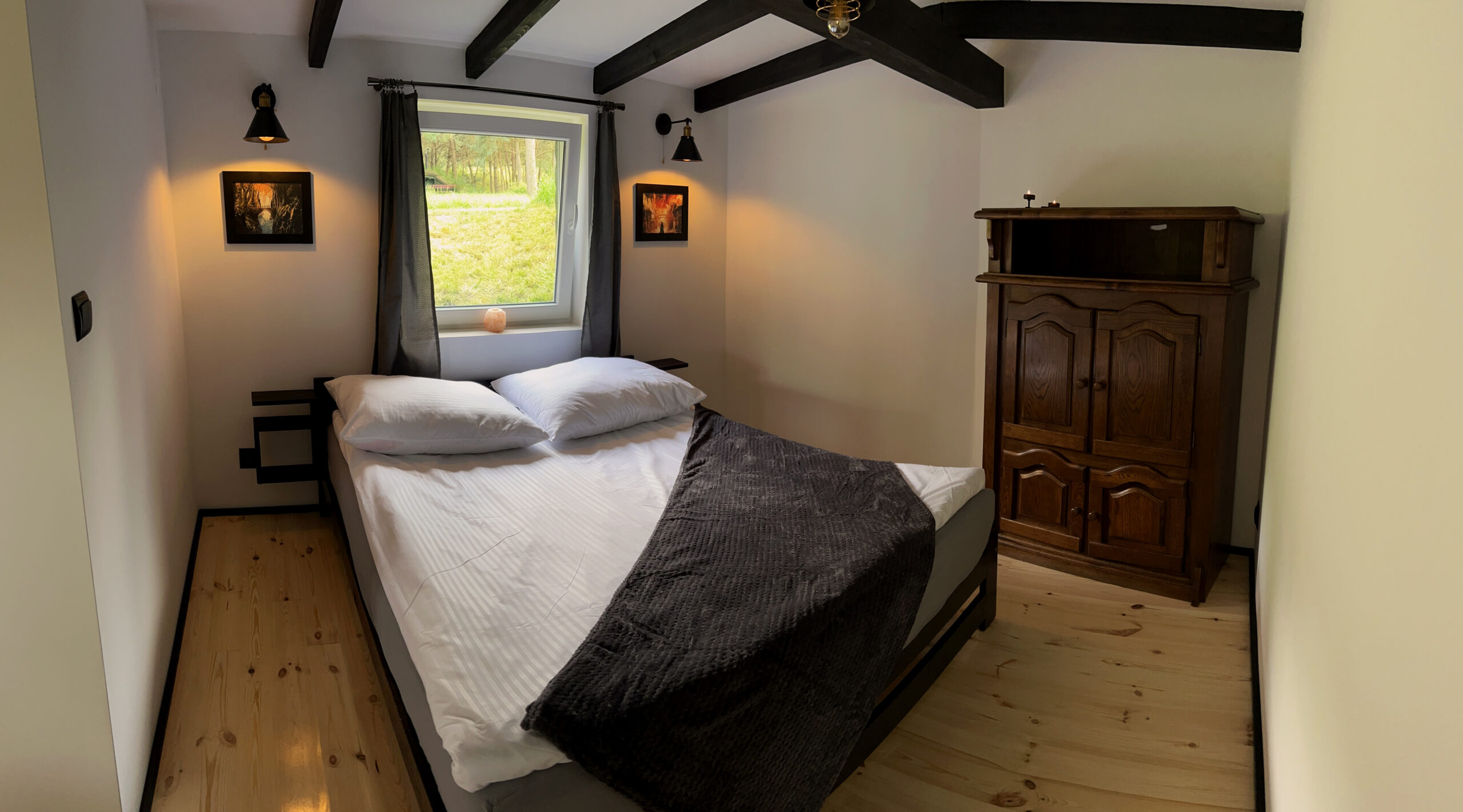 Największa i już ostatnia z serii chatek w klimacie Baśni Hobbitowych. Jest w zupełnie innym klimacie niż pozostałe chatki. Duża, jasna, bardzo przestronna. DUŻY salon z kominkiem i dwiema wygodnymi kanapami, stolikiem oraz wygodnymi pufami, sypialnia usytuowana tak, żeby z łóżka było widać kominek oraz dodatkowy pokój z aż trzema łóżkami pojedynczymi. Oczywiście łazienka i taras wychodzący niemal bezpośrednio na pastwiska ze stadem koni :).